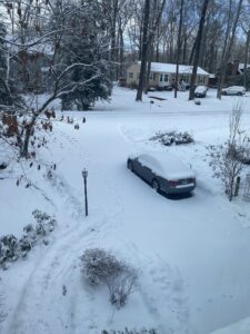 George breaks some big news about the shop, and it snows.