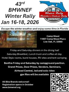 Welcome to North Florida the home of Florida’s Coolest Rally. This year marks the 43rd annual BMWNEF rally and we are excited. Not only do
