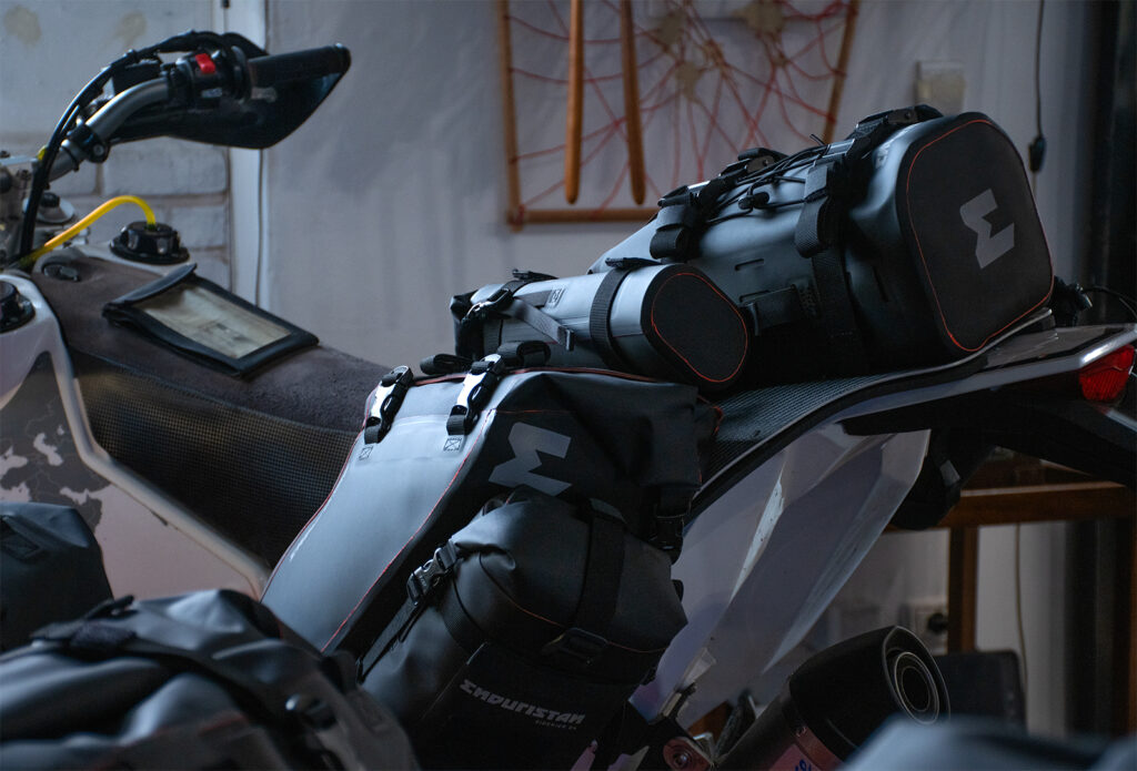 To expand storage, all Sidekick models (01, 02, 03, 04, 05, 10, 20) can be attached to the Hailstorm bags, allowing for a total capacity of up to 65 (Hailstorm 35) or 90 (Hailstorm 50) liters – fully modular and tailored to each rider’s needs. The Sidekicks replace and expand the previous Base Packs and serve the same purpose, offering flexible and waterproof additional storage. Also new is the Sidekick 05, a larger addition to the popular Sidekick line that serves to make Enduristan’s modular system more versatile than ever.