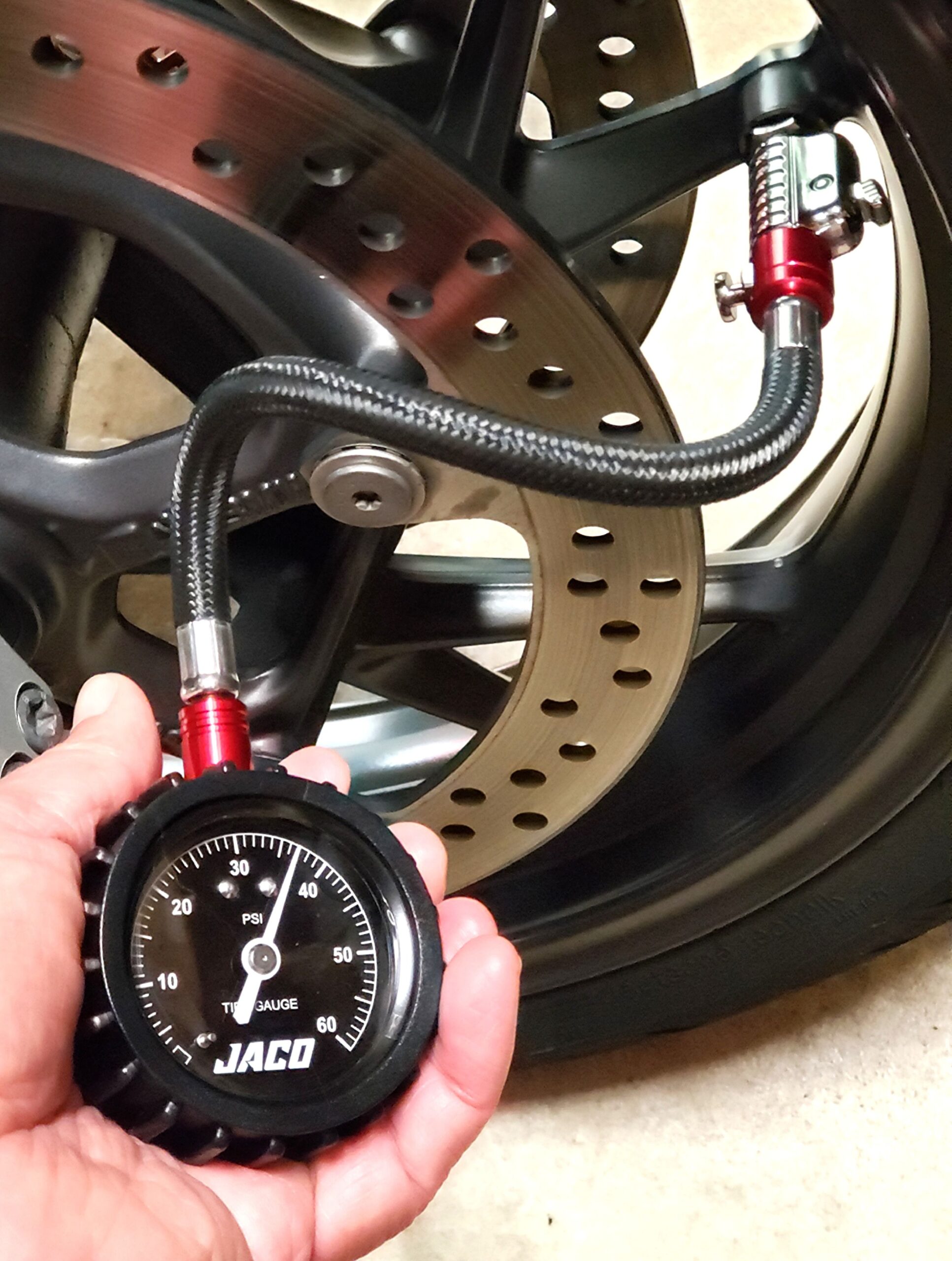 Tire pressure may be the most neglected maintenance procedure in all of motorcycling. Back when I was regularly attending AMA races, tire vendors would sometimes go down a long row of parked bikes with a gauge, taking a survey of sorts to see what percentage of riders had inflated their tires properly. It was always a minority, maybe 30-40%, with many tires reading 15 pounds per square inch (psi) low or worse. Maybe those statistics would be a little better now with the advent of TPMS readouts on many newer bikes’ dashboards, but I’d bet the riding community still comes up quite short on this count. Knowing your own habits and those of your riding buddies, what’s your guess? If I’m right, that’s really a shame. Not only is appropriate tire inflation a quick and easy chore, but the stakes can be critical for both handling and safety. Inadequate inflation can cause anything from squirmy steering to rim damage to catastrophic tire failure.