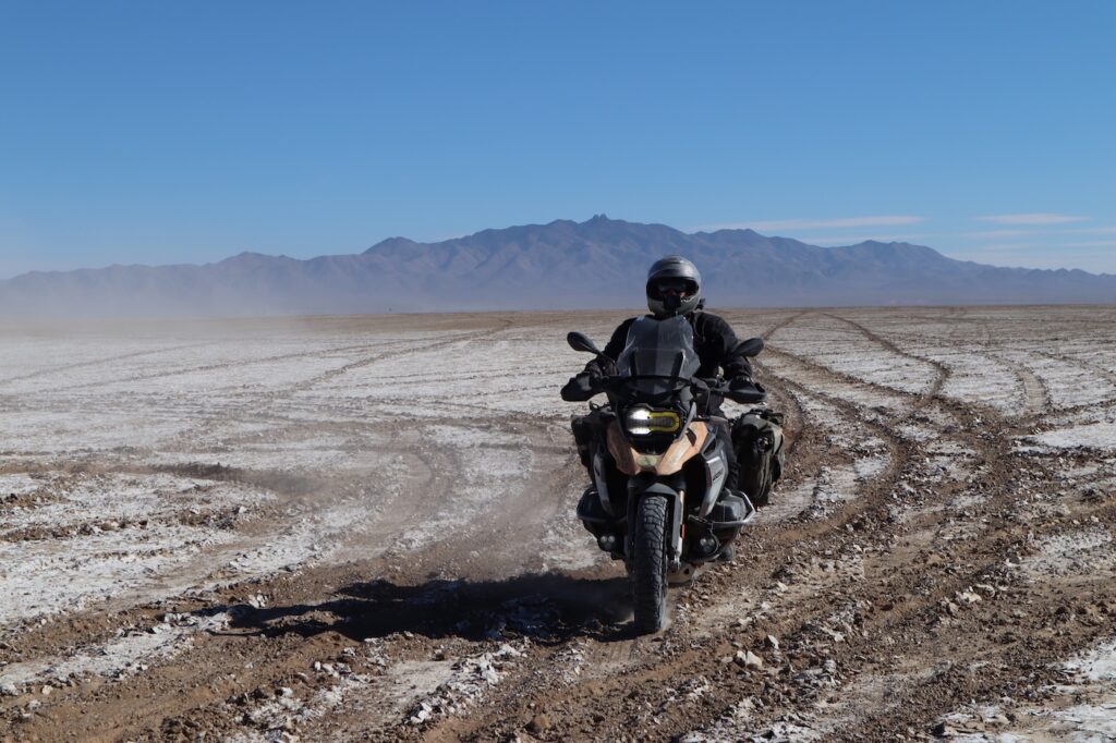 After fortifying ourselves with a hot hotel breakfast the next morning, we mounted up and made our way out to the Willcox Playa. If you’ve never experienced riding on a dry lakebed, you should really consider adding it to your list. This playa was used as a bombing and strafing range in the 1940s, and old targets and slugs can still be found littering the crusty surface.