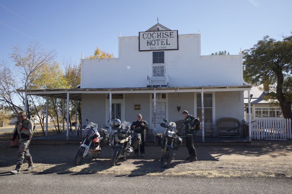 After lunch we took two-track deep into Cochise Stronghold. Keith showed us metates and pictographs among the rocks, evidence of prehistory far more ancient than the 19th century conflicts our tour focused on. We rode east over Middlemarch Pass, dropping back down into the Sulphur Springs valley as we passed the adobe-walled ghost town of Pearce. Back in Willcox for the night, we filled our bellies with fried okra and smoked meats and swapped stories about motorcycling mistakes made and lessons learned. I made a mental note to check my oil level again, hoping to avoid collecting another such story firsthand.